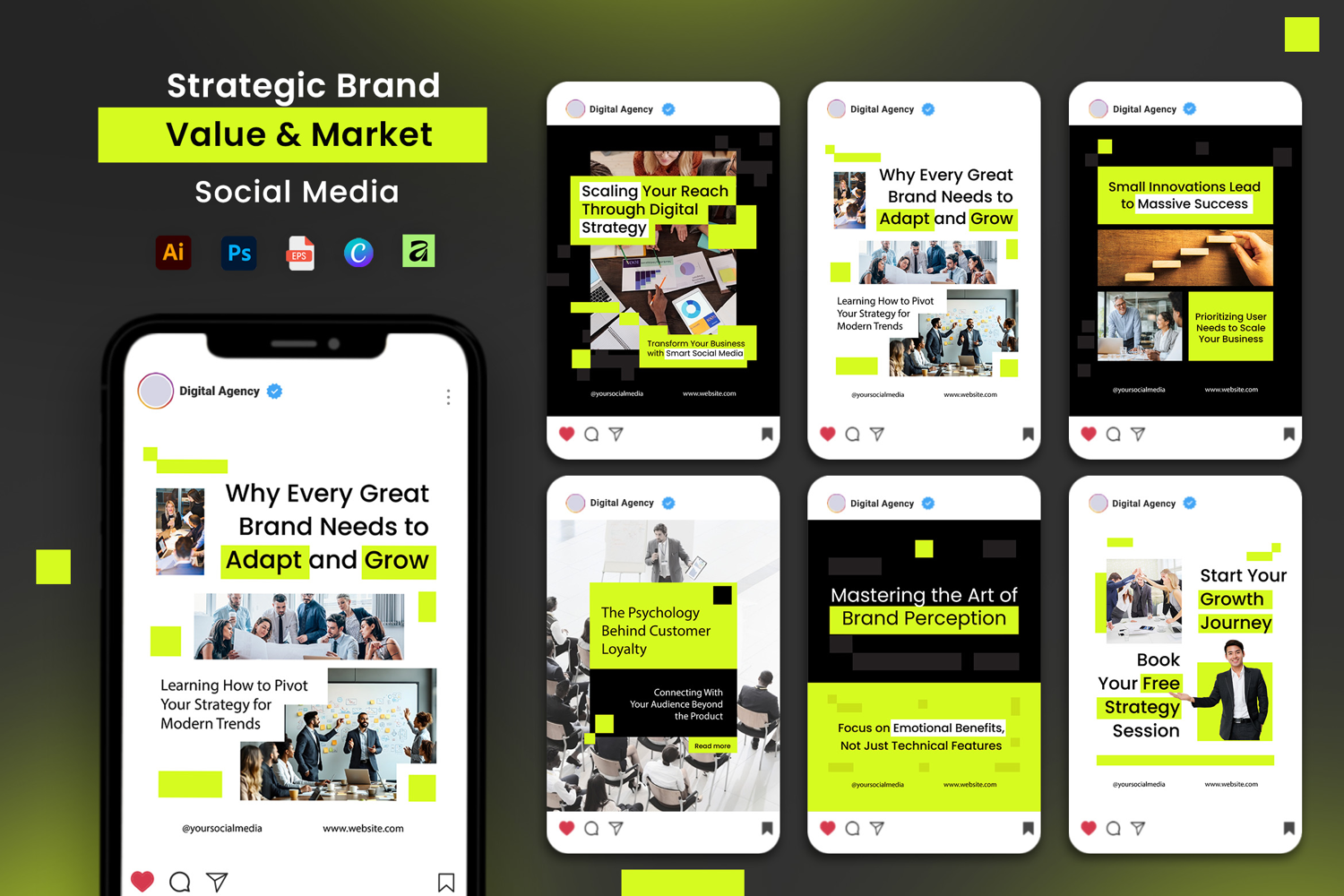 Similar Design Products to Strategic Brand Value & Market Social Media Post