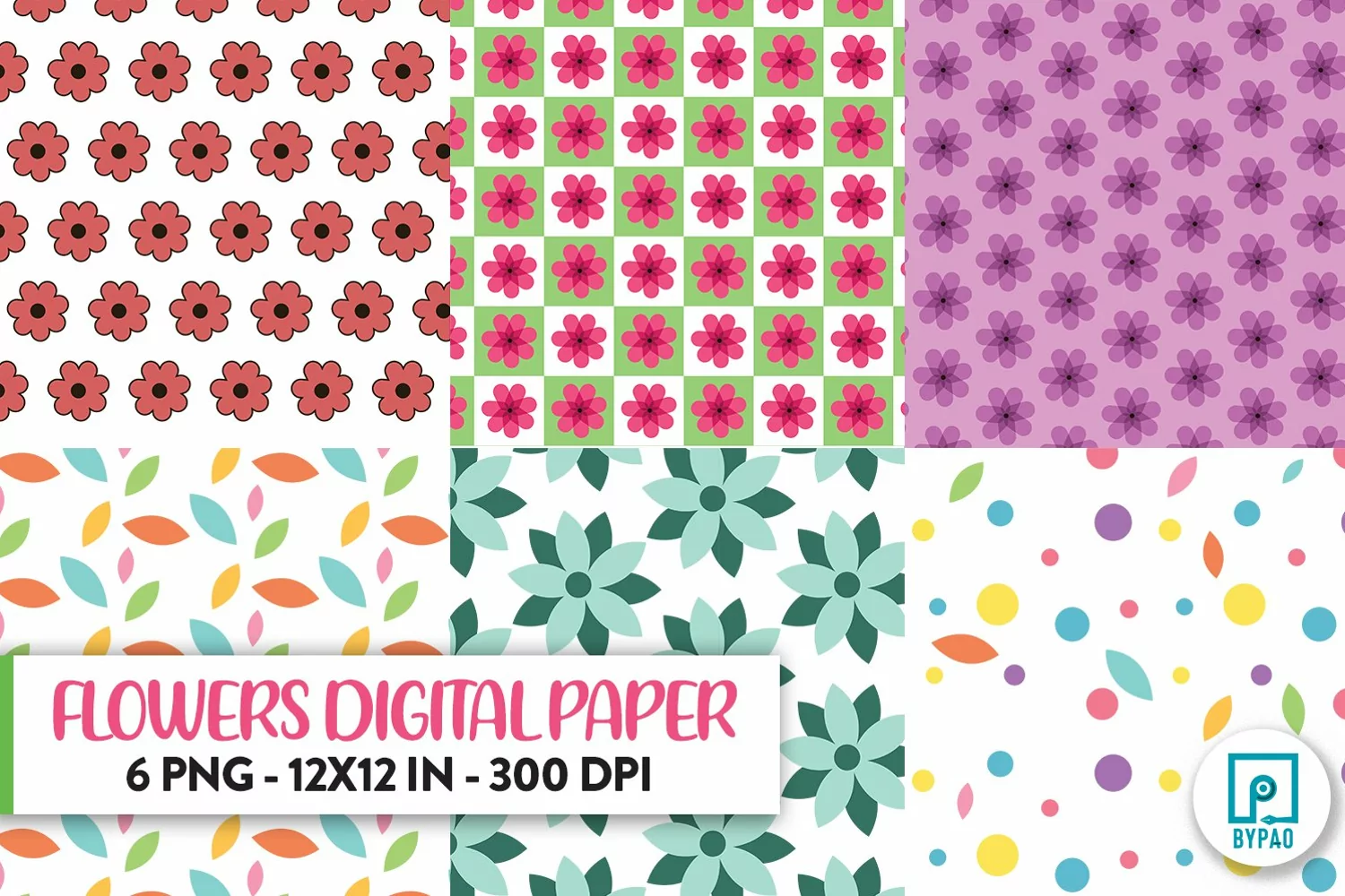 6 Flowers Digital Paper Design