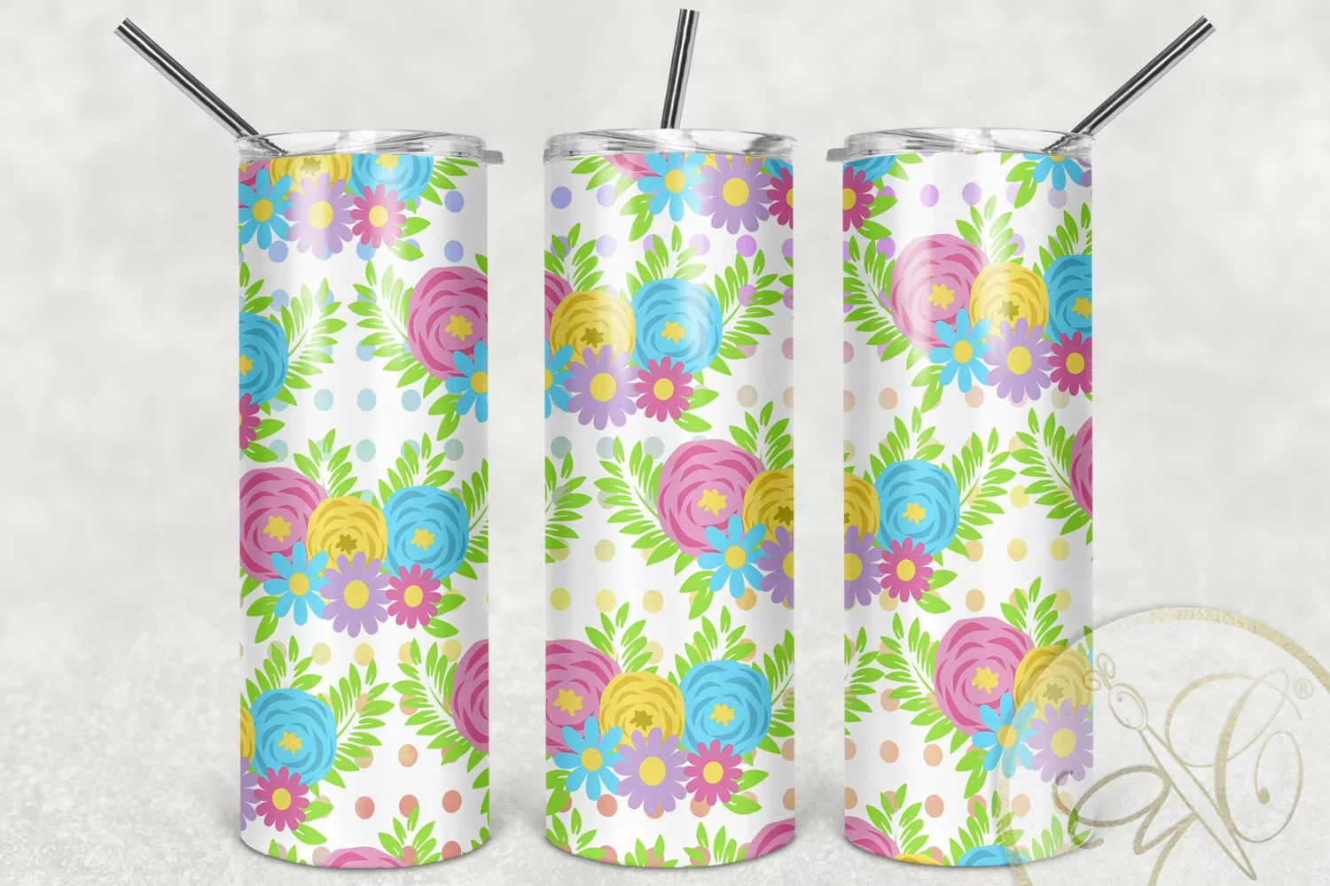 Floral 20oz Skinny Tumbler Sublimation Pattern example image 1