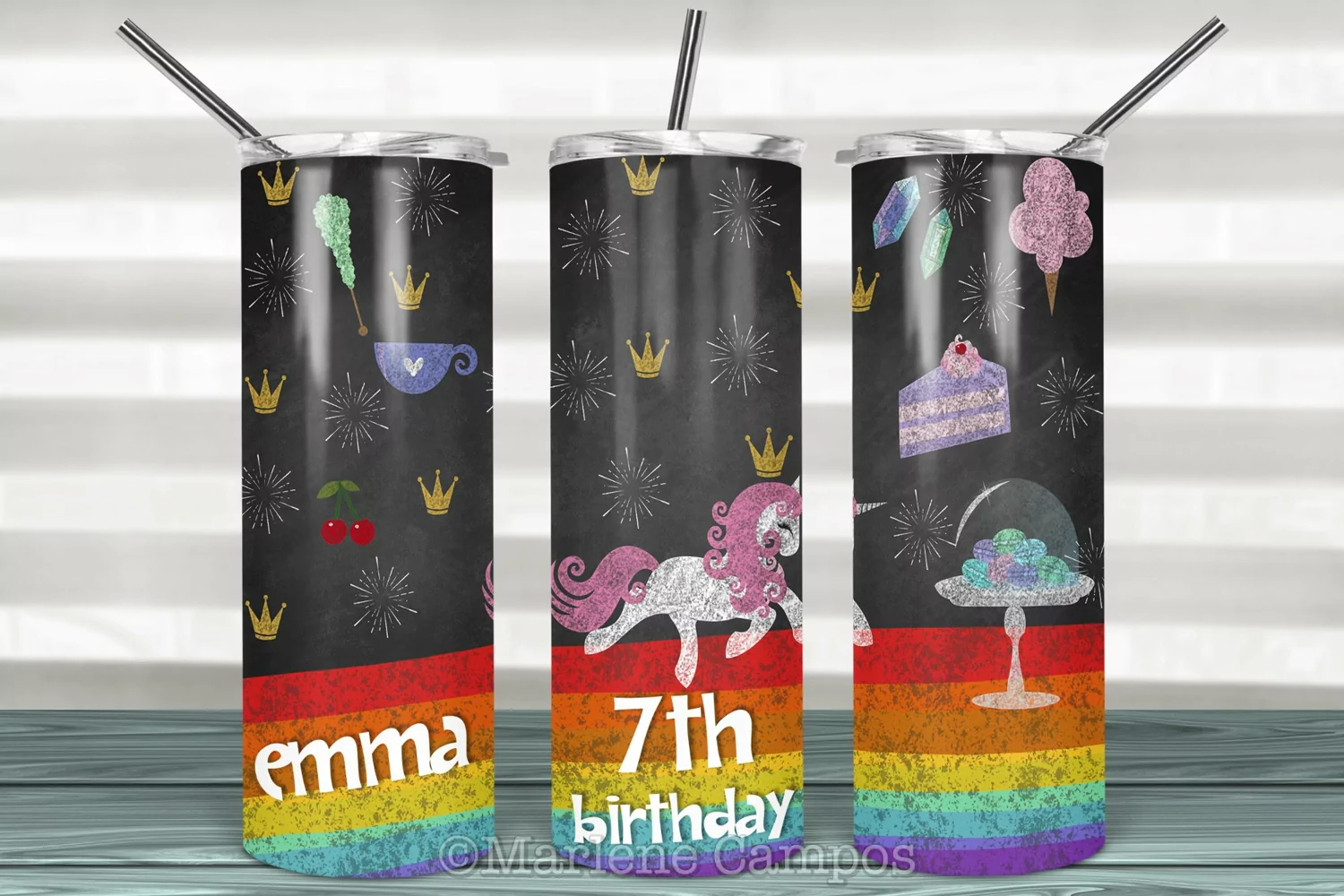 Unicorn Chalk Skinny Tumbler 20oz | Sublimation| White, Pink example image 1