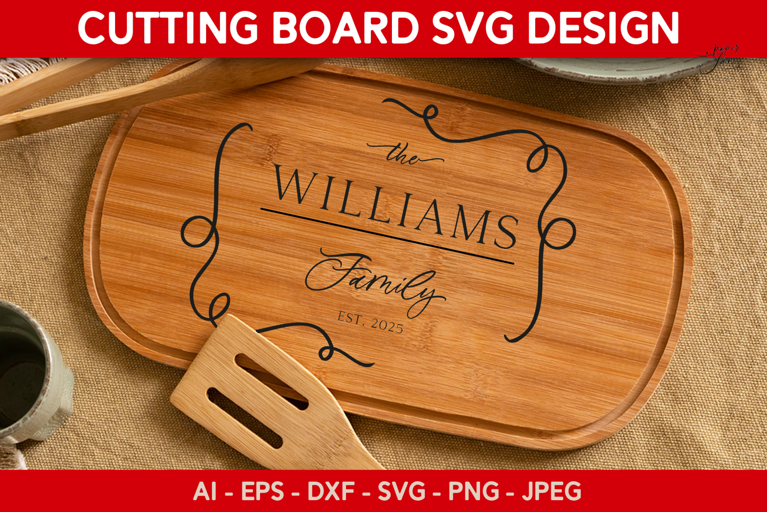 Add a touch of warmth to any kitchen with this elegant Personalized Family Name Cutting Board SVG!