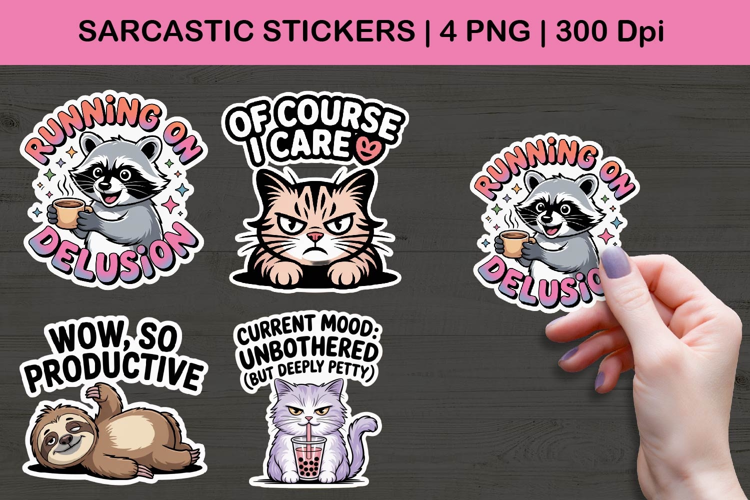 Each PNG is 300 DPI with a transparent background, ready for high-quality prints and digital use. These humorous characters add personality and relatable sarcasm to any project.