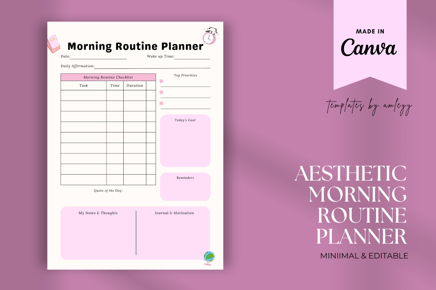 Aesthetic Morning Routine Planner | Editable Canva Template | Digital Morning Ritual Page | Printable Daily Routine Tracker