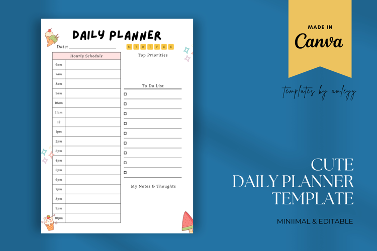 Cute Daily Planner Template – Canva Editable, Aesthetic Printable PDF (A4 & US Letter)