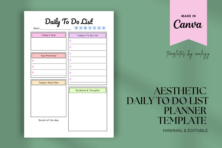 Aesthetic Daily To-Do List Planner Template | Minimalist Canva Editable Productivity Printable | Digital Planner for iPad & Tablet