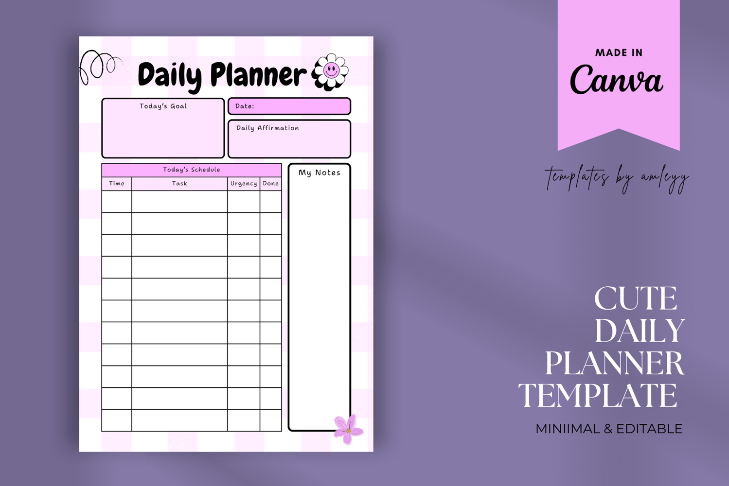 Cute Daily Planner Template – Editable Canva Printable, Aesthetic Minimalist Daily Schedule, Digital or Printable PDF