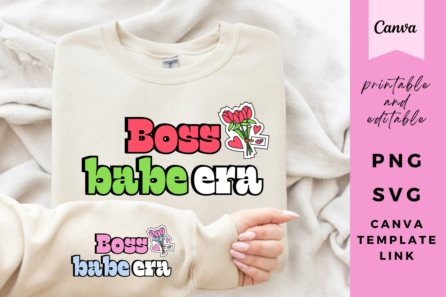 Aesthetic Boss Babe Era SVG, PNG, Canva Template - Retro Y2K Style Entrepreneur Graphic, Editable Trendy Sticker Design for Apparel
