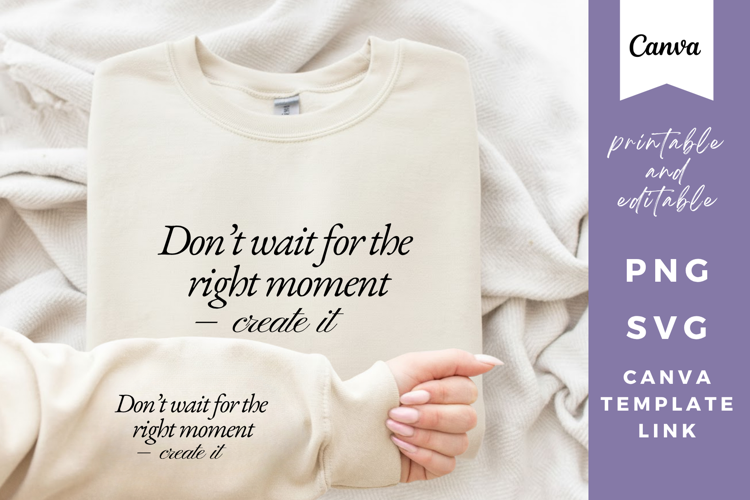 "Don't Wait For The Right Moment - Create It" SVG, PNG, Canva Template - Motivational Quote Graphic, Elegant Script Editable Design