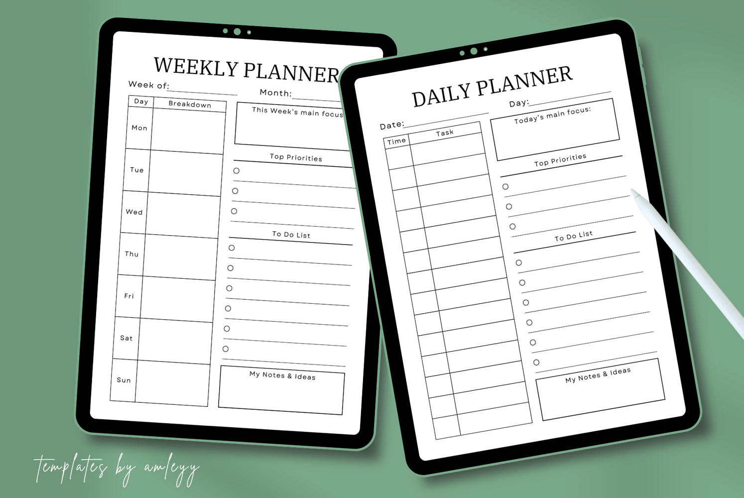 Simple Daily and Weekly Planner Template | Minimalist Canva Planner | Printable Productivity Organizer | Editable Planner | Digital Download