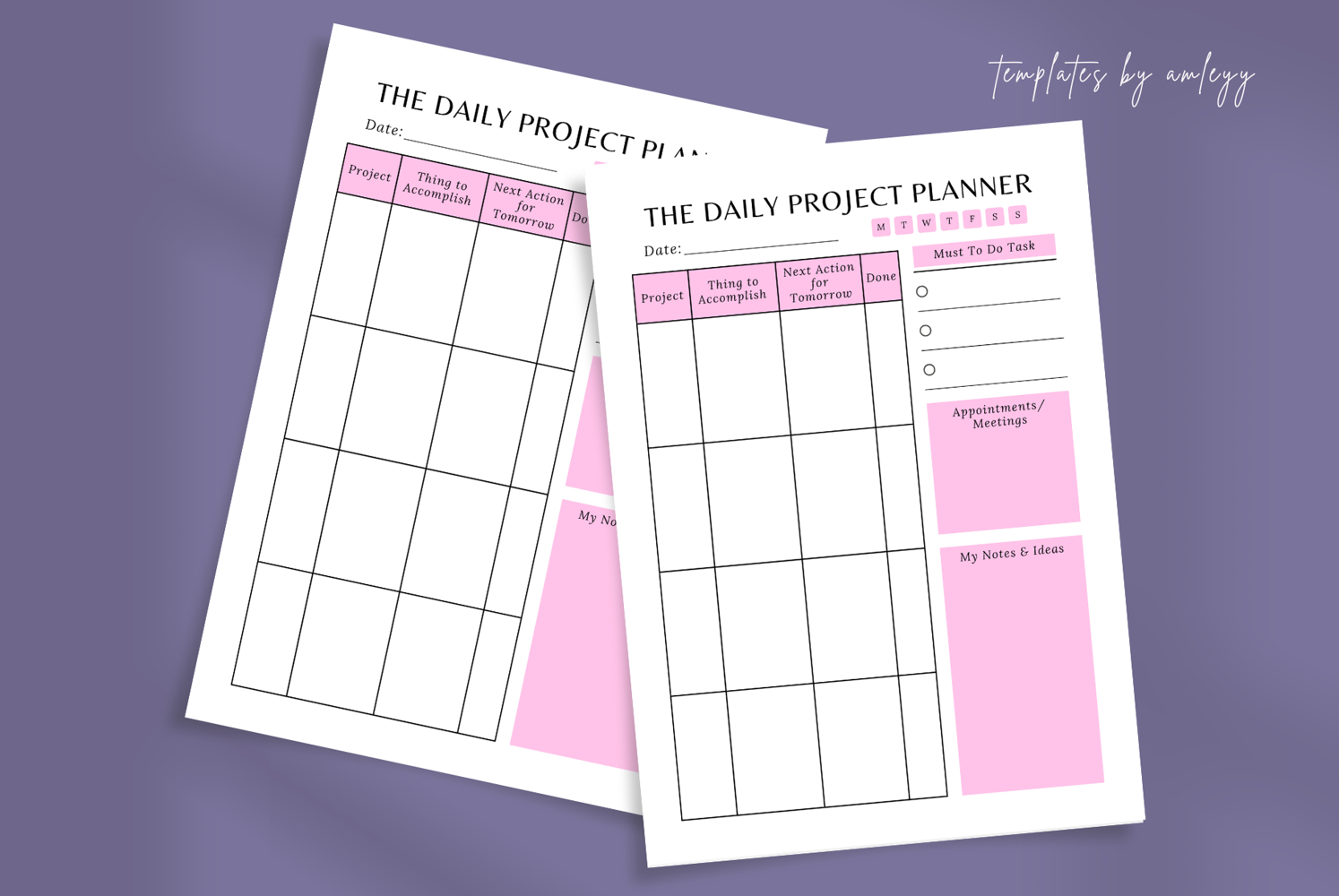 Daily Project Planner Printable | Task Breakdown & Project Tracker Template | Canva Editable | Pink Accent Productivity Sheet