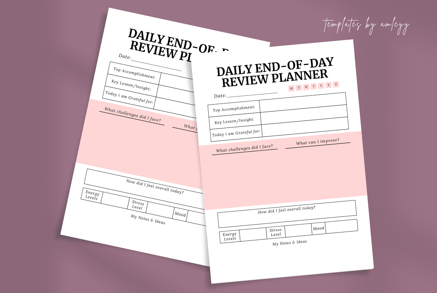 Transform your day with intentional closure using this Daily End-of-Day Review Planner. This printable template is designed to foster self-awareness, celebrate wins, learn from challenges, and build positive habits through daily reflection. Perfect for anyone serious about personalized growth, mindfulness, and ending each day on a high note.