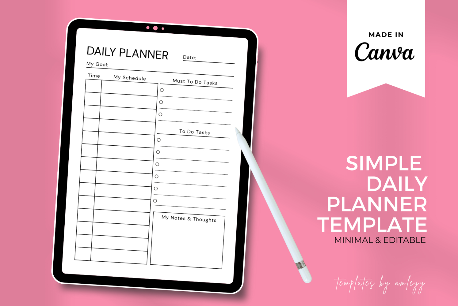 🖤 Ultimate Minimalist Daily Planner Template (Canva) - Clean Black & White Time Blocking & Goal TrackerStreamline your day and eliminate distractions with the Ultimate Minimalist Daily Planner Template! This simple, highly functional black and white design is perfect for those who thrive on clarity, efficiency, and aesthetics. Designed to be fully editable in Canva, it offers a professional, ink-friendly solution for managing your time and tasks.