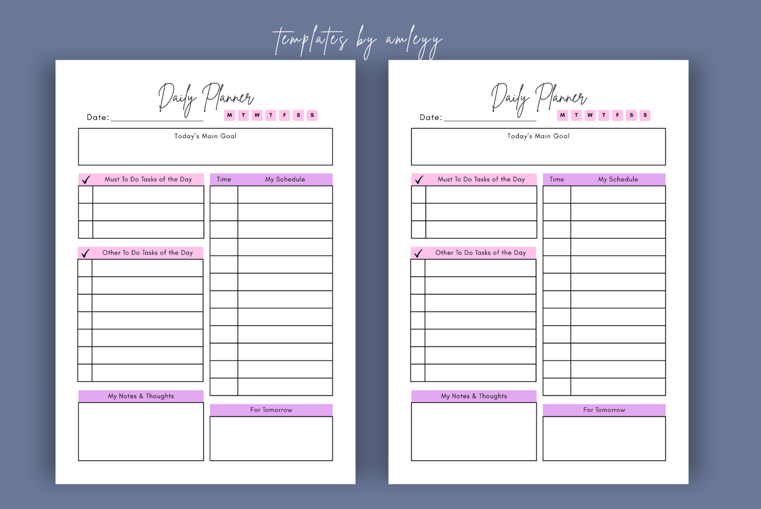 Aesthetic Daily Planner Template | Minimalist Productivity Planner | Printable & Digital Undated Daily Schedule Organizer | Boost Focus, Time Management & Self-Care