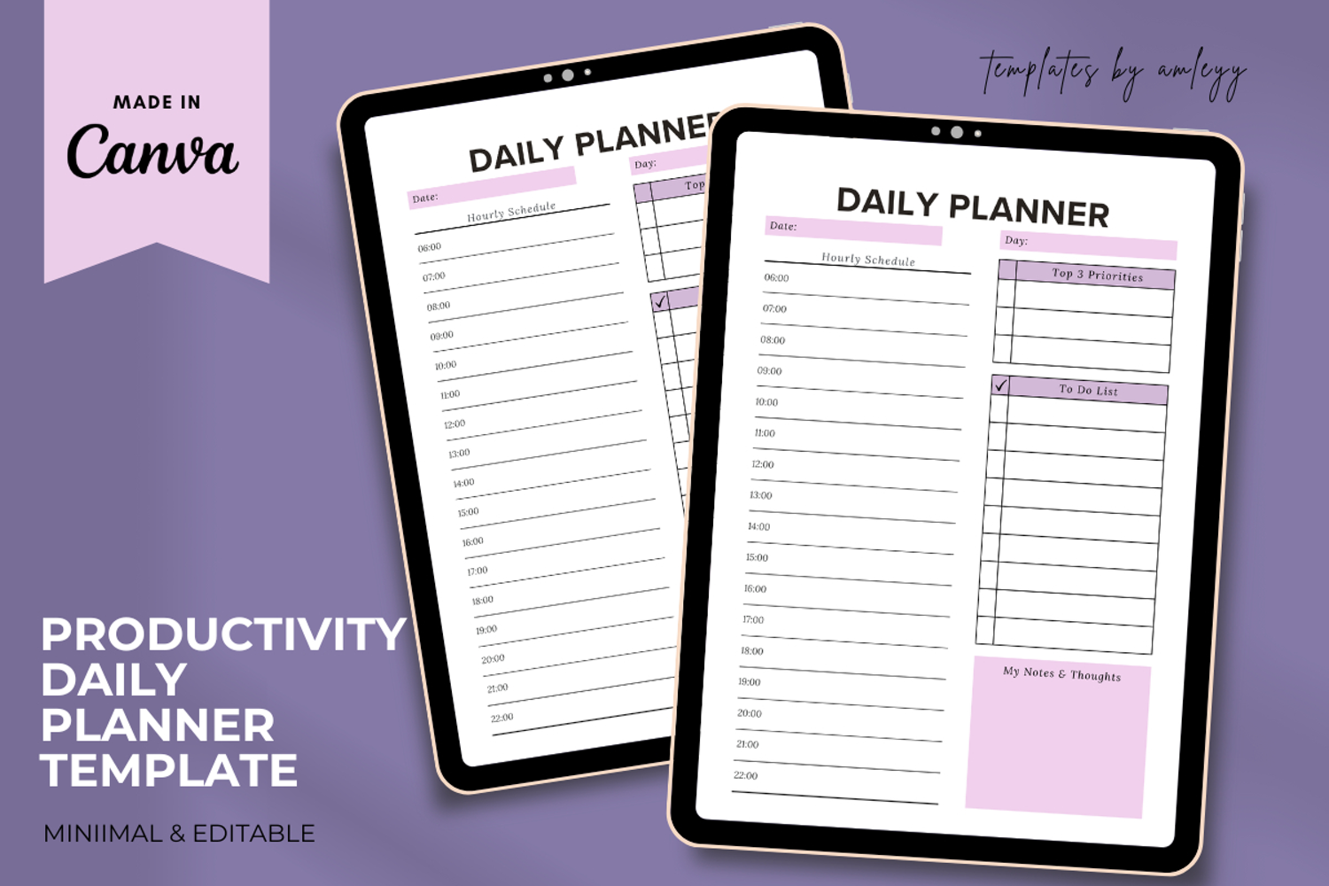 Productivity Daily Planner Template – Editable Canva Daily Organizer | Minimalist Task & Time Management Planner | Printable & Digital Planner