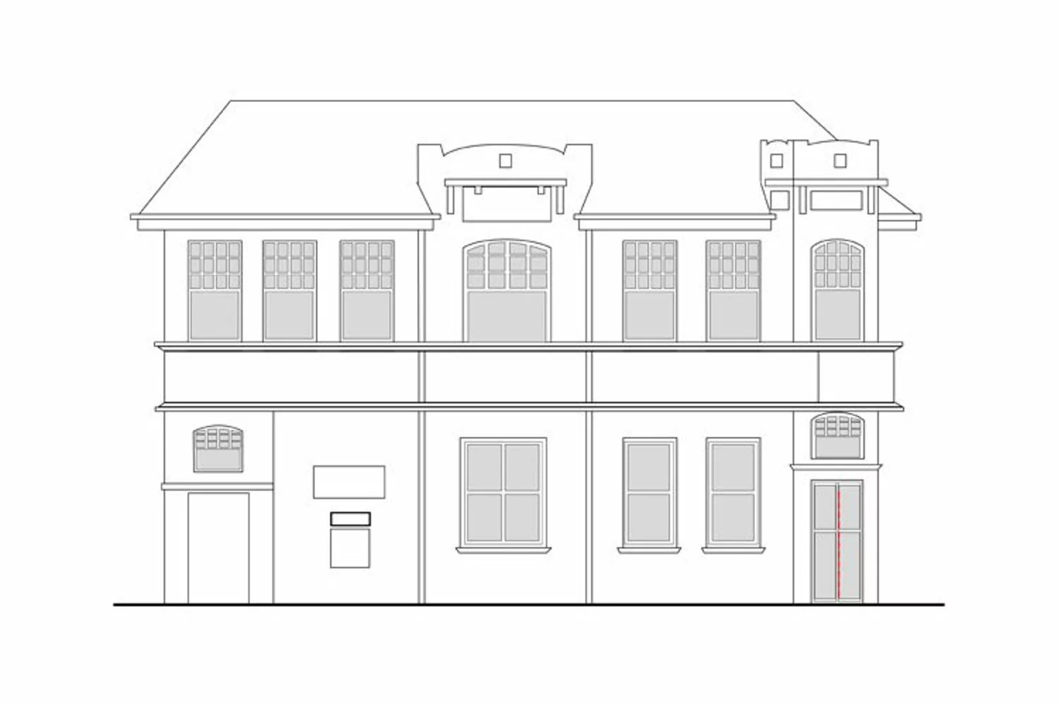 line drawing illustration of a heritage mansion building viewed from front elevation on white background. **The downloadable zip includes editable vector EPS and  hi-res JPG format.**