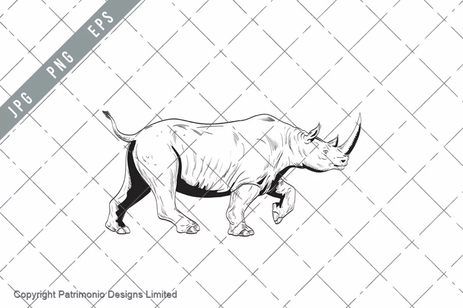 Rhinoceros or Rhino Charging Side View Comics Style Drawing