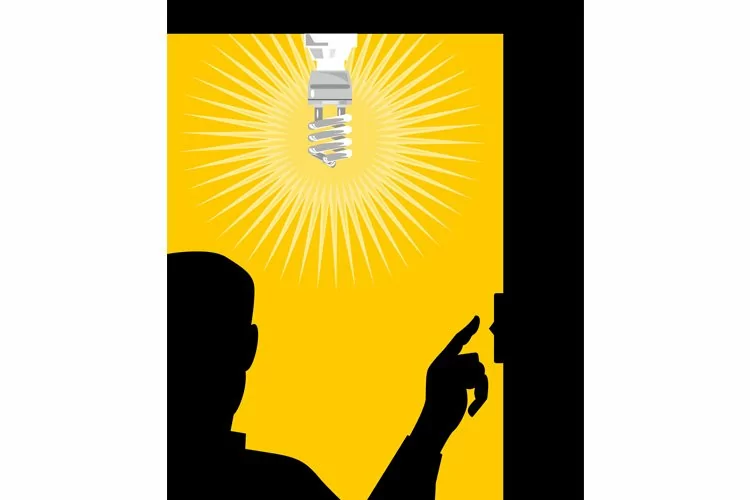 Man Switching On Lighting Bulb