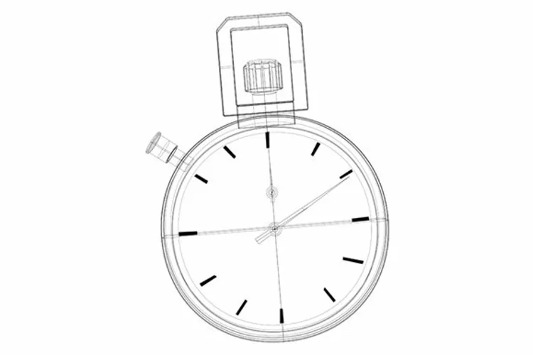 Illustration of stopwatch wireframe line drawing front view.