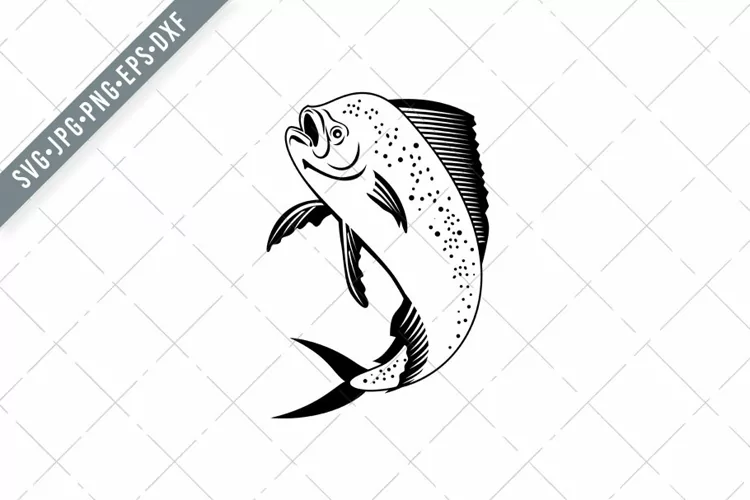 Mahi-mahi or Common Dolphinfish Jumping Up High Retro SVG example image 1