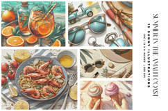 This set of Amalfi Coast-Inspired Illustrations brings golden sunshine and rustic charm to your creative toolkit. Featuring hand-drawn textures and rich, sun-soaked color palettes, each of the 15 JPGs captures the essence of Italian summer—lemons, olive branches, limoncello, fresh bread, vintage ceramics, and cozy breakfast scenes. These nostalgic sketches blend elegance and warmth, ideal for projects with a Mediterranean heart and artisan soul.