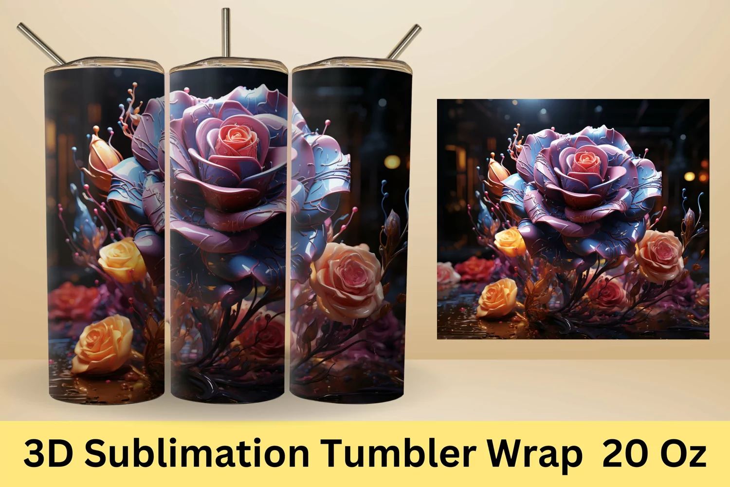 3d Flower Sublimation Tumbler | 3d Tumbler Wrap | 20 oz Skinny