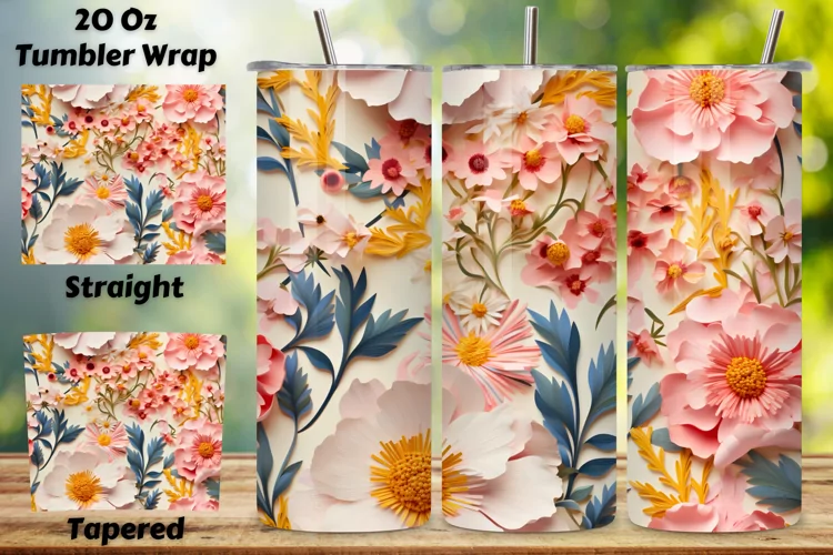 3D Wildflowers in Spring Tumbler Wrap | Seamless Wrap Design