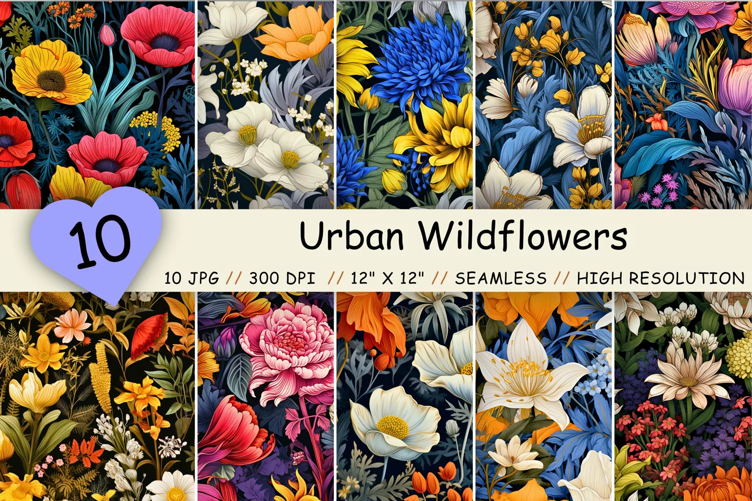Urban Wildflowers Seamless Floral Pattern Set | Spring