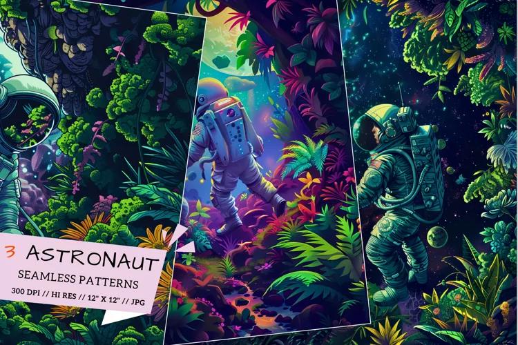 Astronaut Joy Seamless Pattern Set | Astronaut Pattern Print