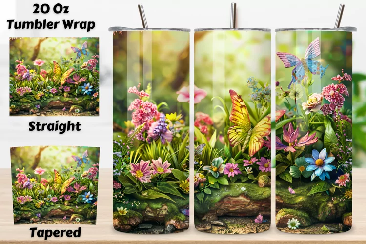 Seamless Garden Landscape Tumbler Art, Floral Fantasy