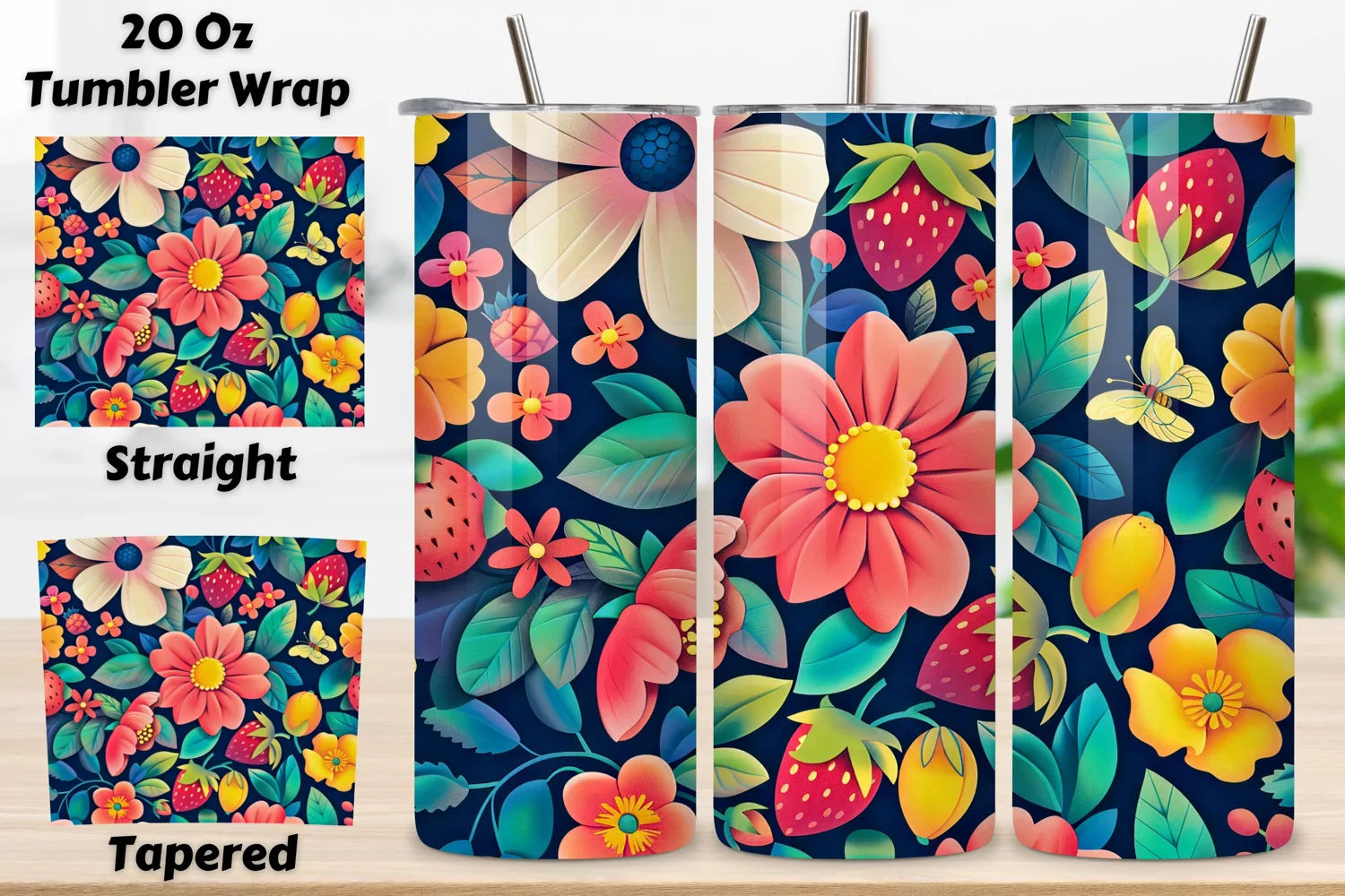 3D Flowers Tumbler Sublimation Wrap | Seamless Tumbler Wrap