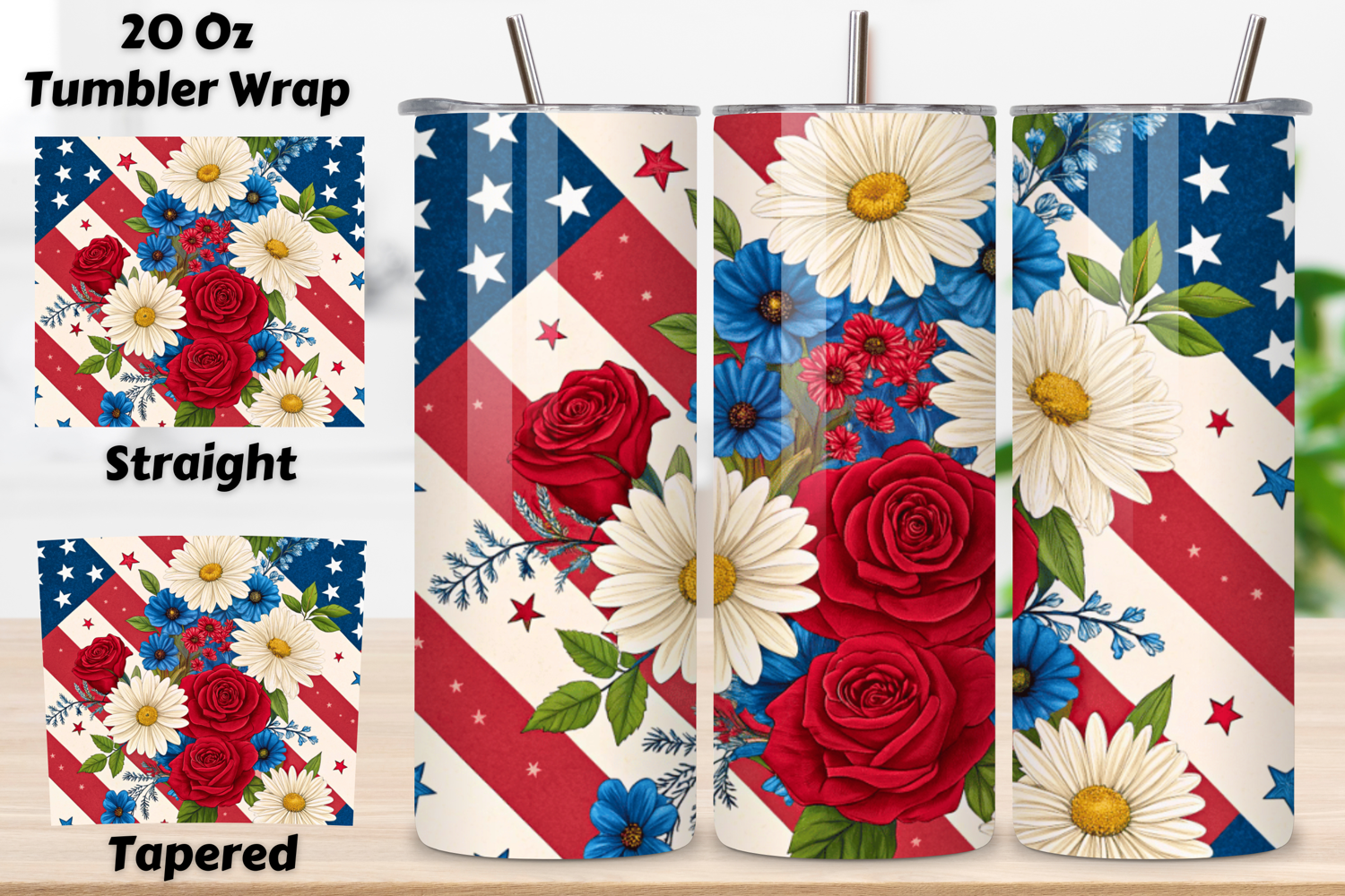 Memorial Day Floral Seamless Tumbler Wrap, Patriotic Flowers