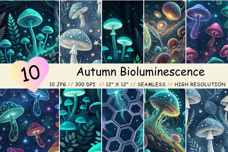 Autumn Bioluminescence Seamless Pattern, Digital Paper