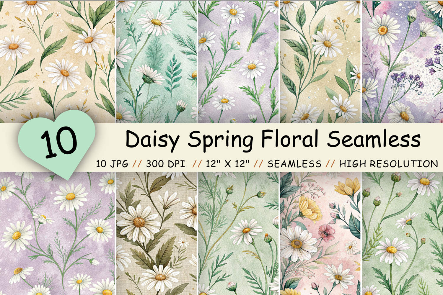 Flowers Premium Digital Papers :Daisy Spring Floral Seamless Pattern Bundle, Soft Pastel Flower Digital Paper, Cottage Garden Backgrounds
