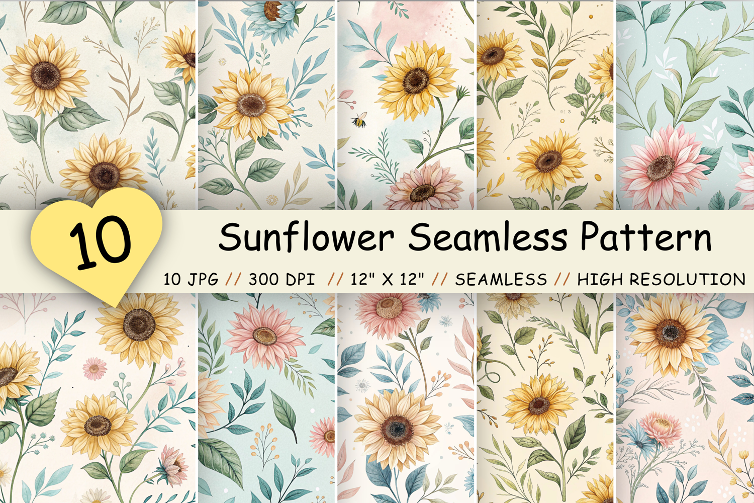 Sunflower Digital Paper Sunflower Seamless Pattern Sunflower Fabric Pattern Sunflower Repeat Pattern Sunflower Seamless Pattern Bundle Shabby Chic Floral Digital Paper Pack Cottagecore Watercolor Sunflower Fabric Design Sunflower Floral Pattern Sunflower Cottagecore Pattern Sunflower Shabby Chic