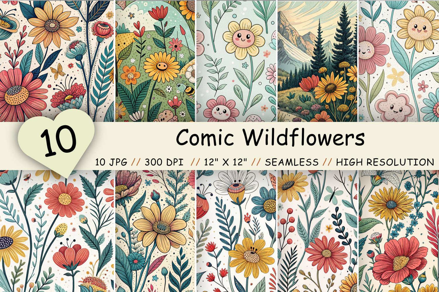 Similar Design Products to Comic Wildflowers Seamless Digital Paper, Cute Cartoon