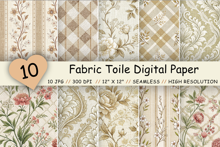Fabric Toile Digital Paper Pack, Vintage Floral Toile