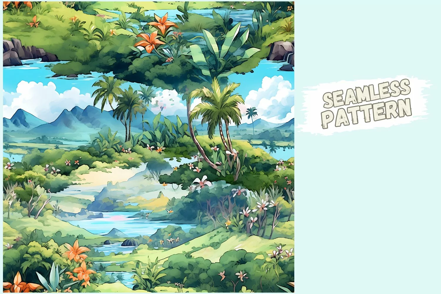 Step into the enchanting embrace of a "Lush Tropical Paradise" with our seamless digital nature pattern. This captivating design immerses you in the vibrant, natural beauty of a tropical oasis, where lush greenery thrives under the warm sun. Perfect for a wide range of creative applications, from textiles to wallpapers and digital backgrounds, this seamless pattern allows you to infuse your projects with the vibrant colors and organic wonders of a tropical paradise.