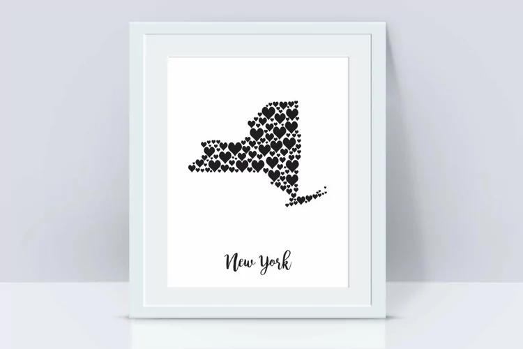 New York map with hearts example image 1