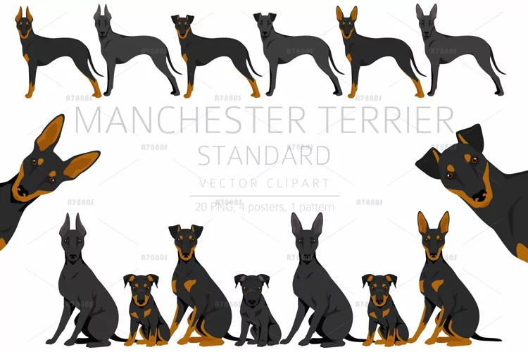 Design Graphic English Dog Terrier Manchester Dog Breed Natural Ears Black And Tan Manchester Terrier