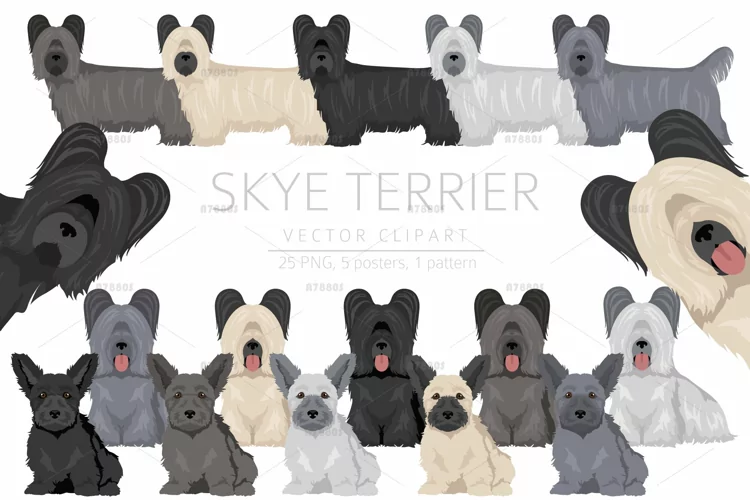 Illustration Color Graphic Dog British Terrier Scottish Scotch Skye Terrier Skye