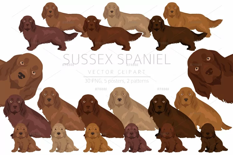 Illustration Graphic English Dog Spaniel Sussex Spaniel Docked Tail Clumber Sussex Natural Tail