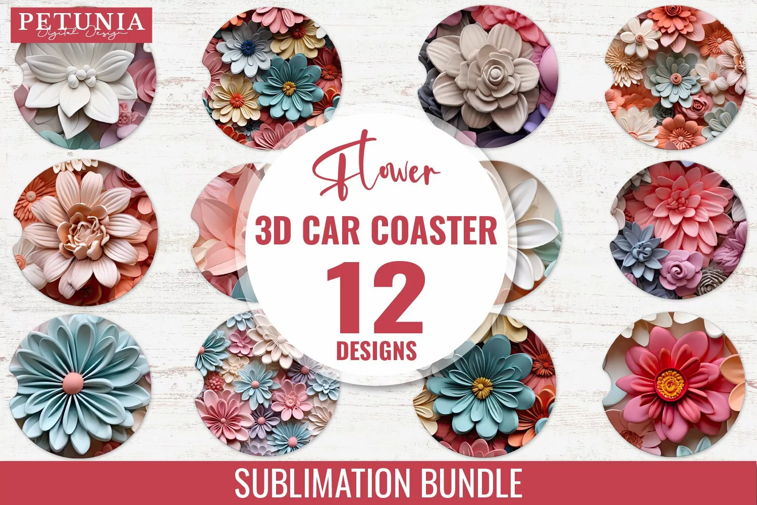 3D Flower Car Coaster | 3D Car Coaster Sublimation Bundle