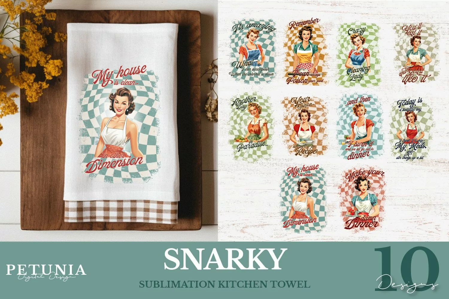 Similar Design Products to Snarky Quotes | Retro Kitchen Towel Sublimation Bundle