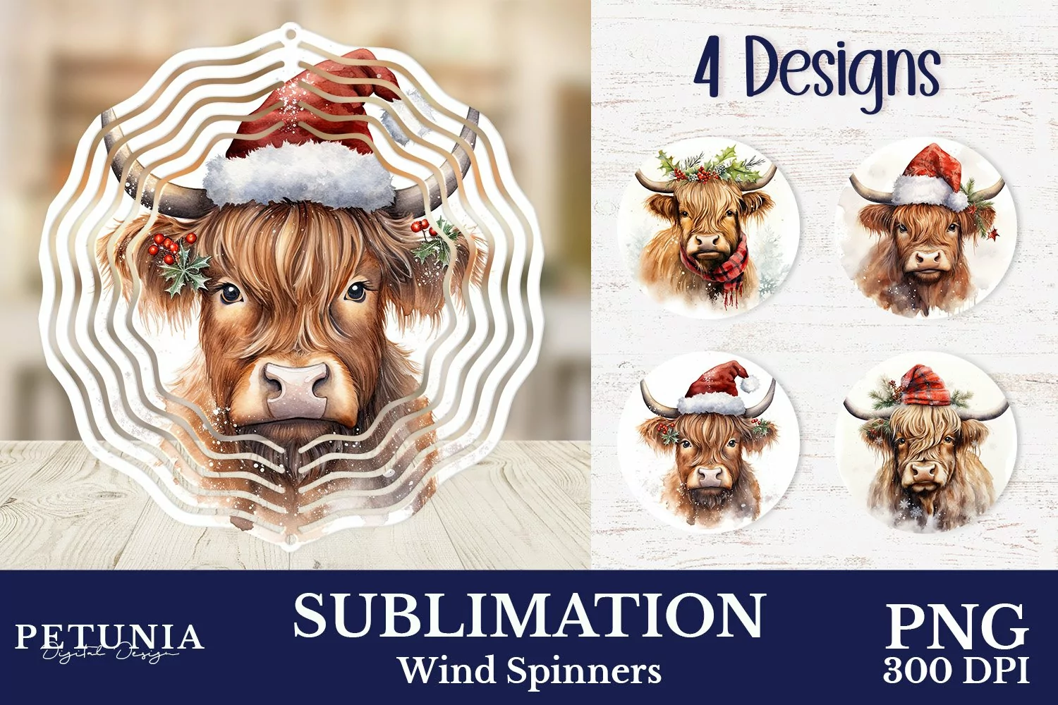 Similar Design Products to Highland Cow PNG | Christmas Wind Spinner Sublimation Design