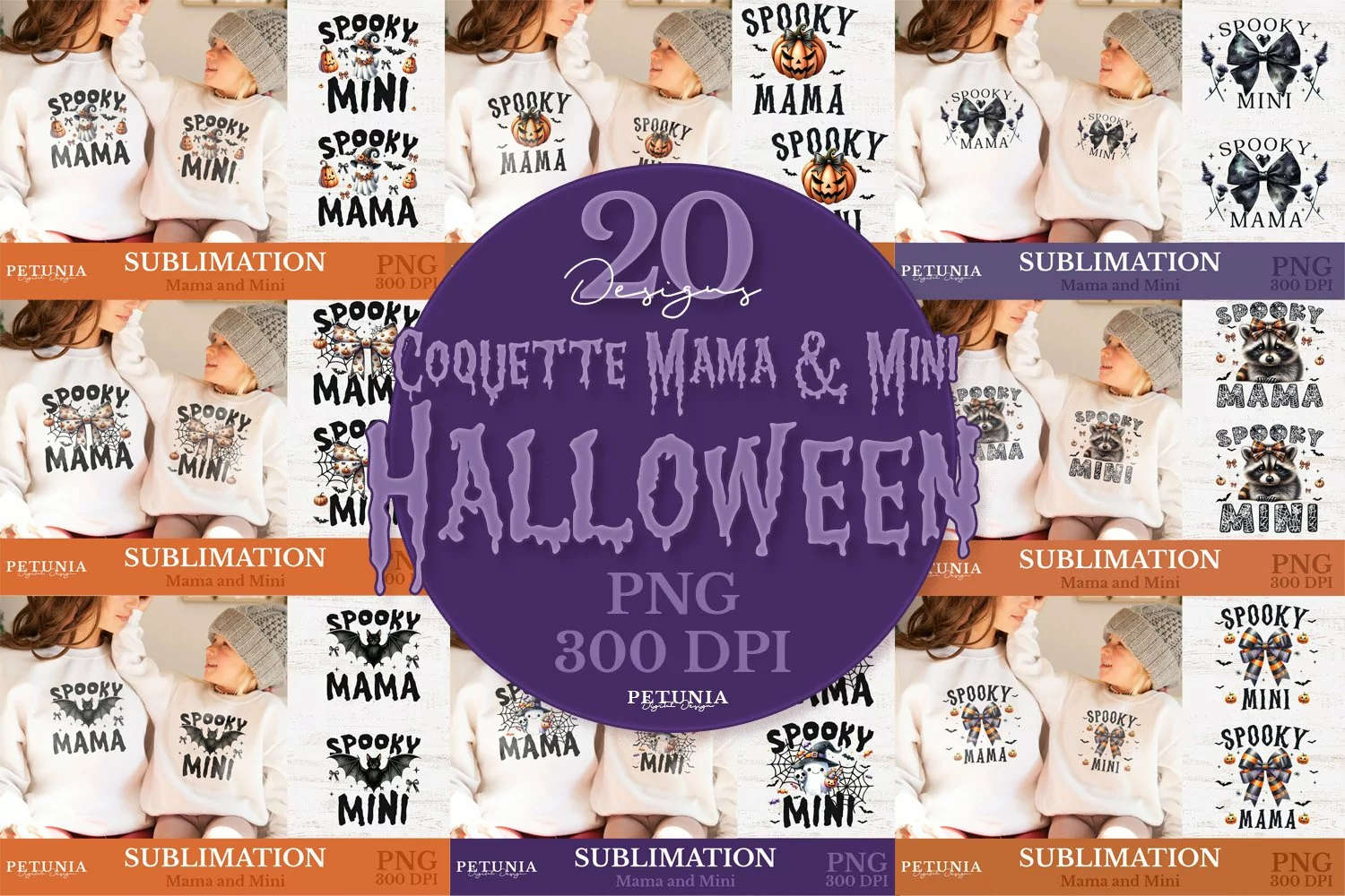 • 20 designs (10 Spooky Mama designs & 10 Spooky Mini designs)