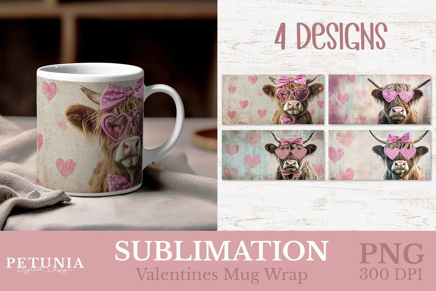 Cute Cow Valentines Mug Wrap | Valentines Mug Sublimation