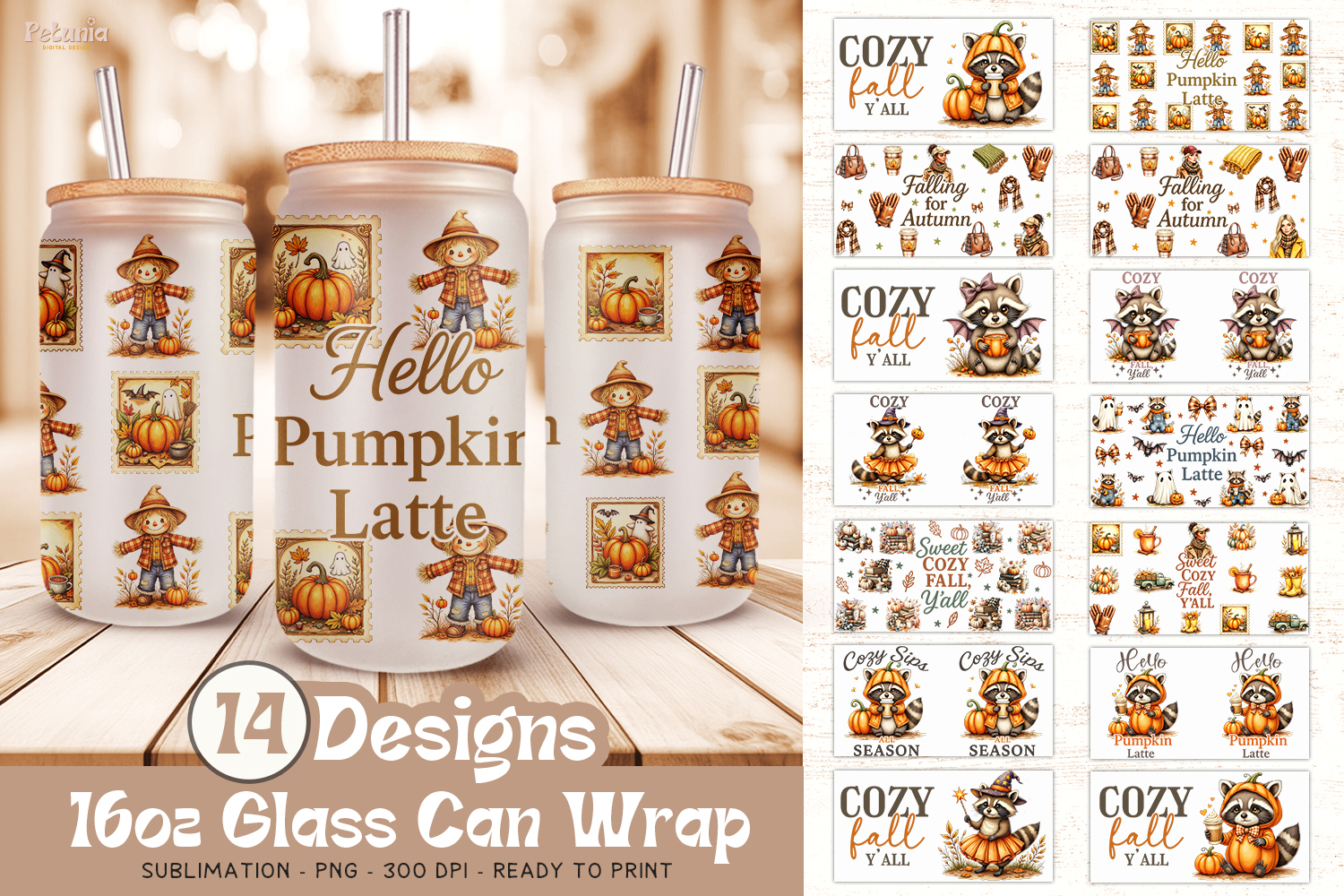Autumn Sublimation Design Halloween Sublimation Png Coffee Lover Png Raccoon Png Design Halloween Glass Can Wrap Glass Can Wrap Png Fall Libbey Glass Can Wrap 16oz Glass Can Sublimation Cute Fall Glass Can Cozy Fall Libbey Wrap Png