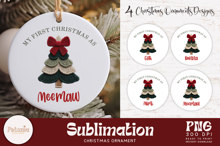 My first Christmas grandparents png designs being used as Christmas ornaments png prints