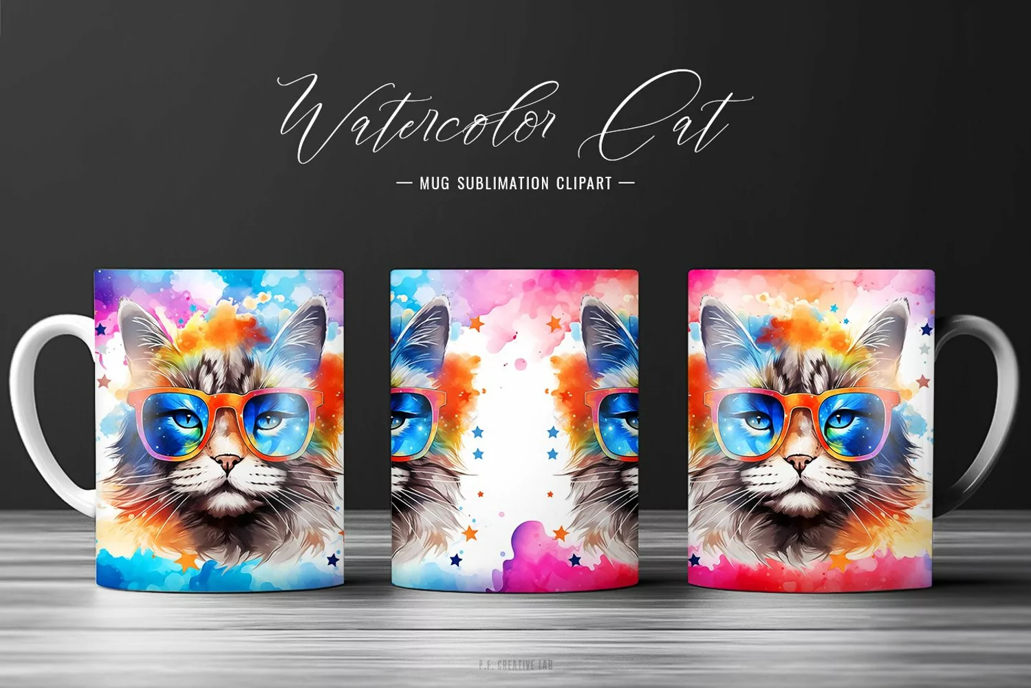 Watercolor Sublimation Cute Cat Mug Wrap Design example image 1