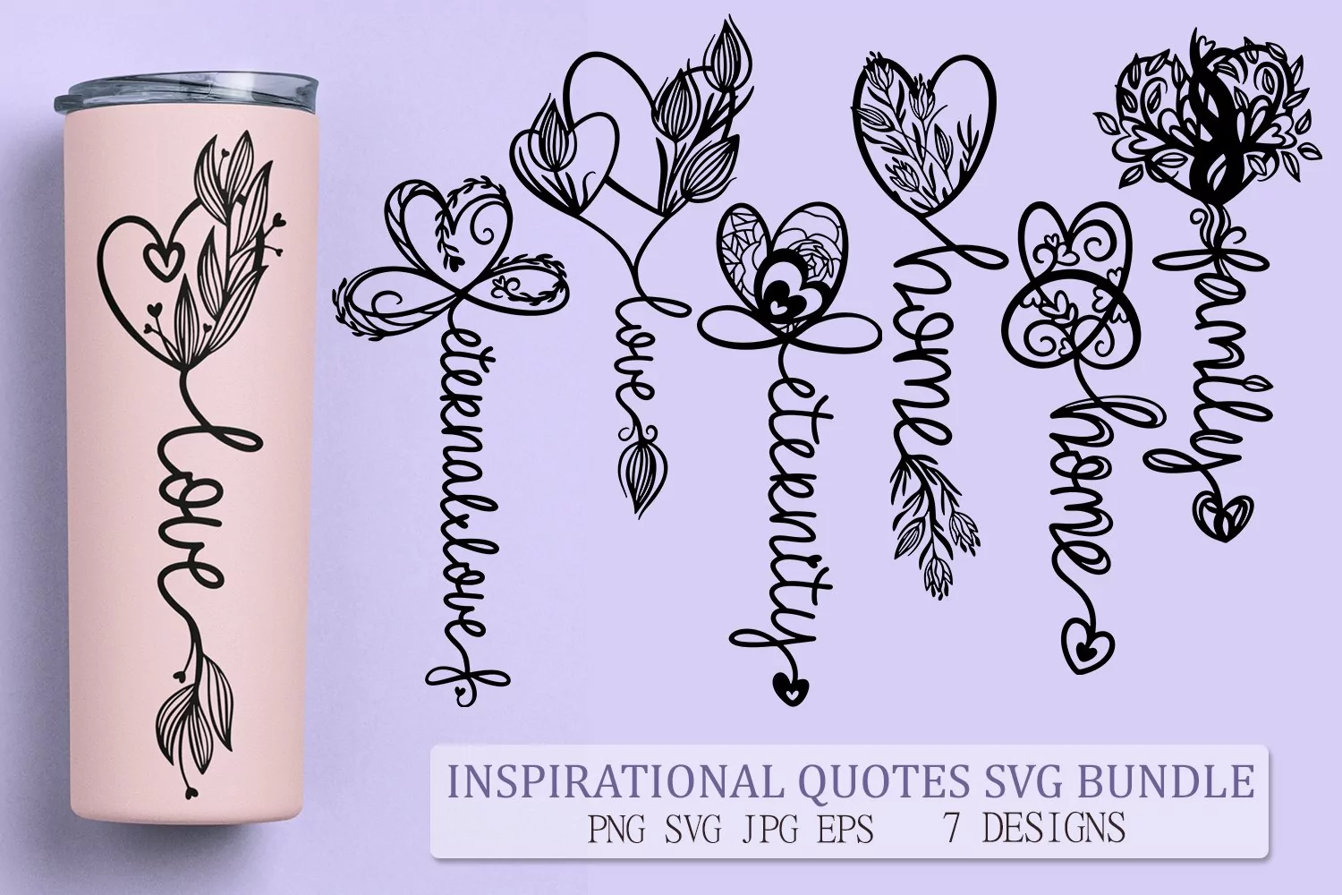 Inspirational Quote SVG Bundle | Floral hearts tumbler desig example image 1